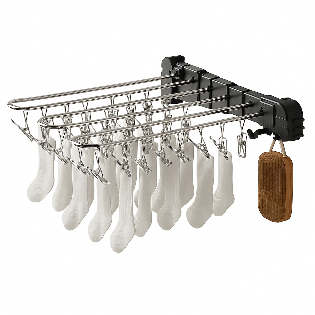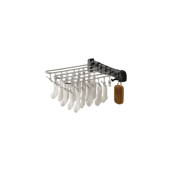 Otimize sua lavanderia ou área de serviço com o Rack de Secagem Dobrável Solaris em Aço Inox, projetado para quem deseja eficiência, durabilidade e elegância. Com 24 pregadores embutidos, ele permite secar meias, roupas íntimas, toalhas e pequenos itens de forma prática e organizada. Seu mecanismo retrátil aciona em direção à parede, economizando espaço quando não está em uso.